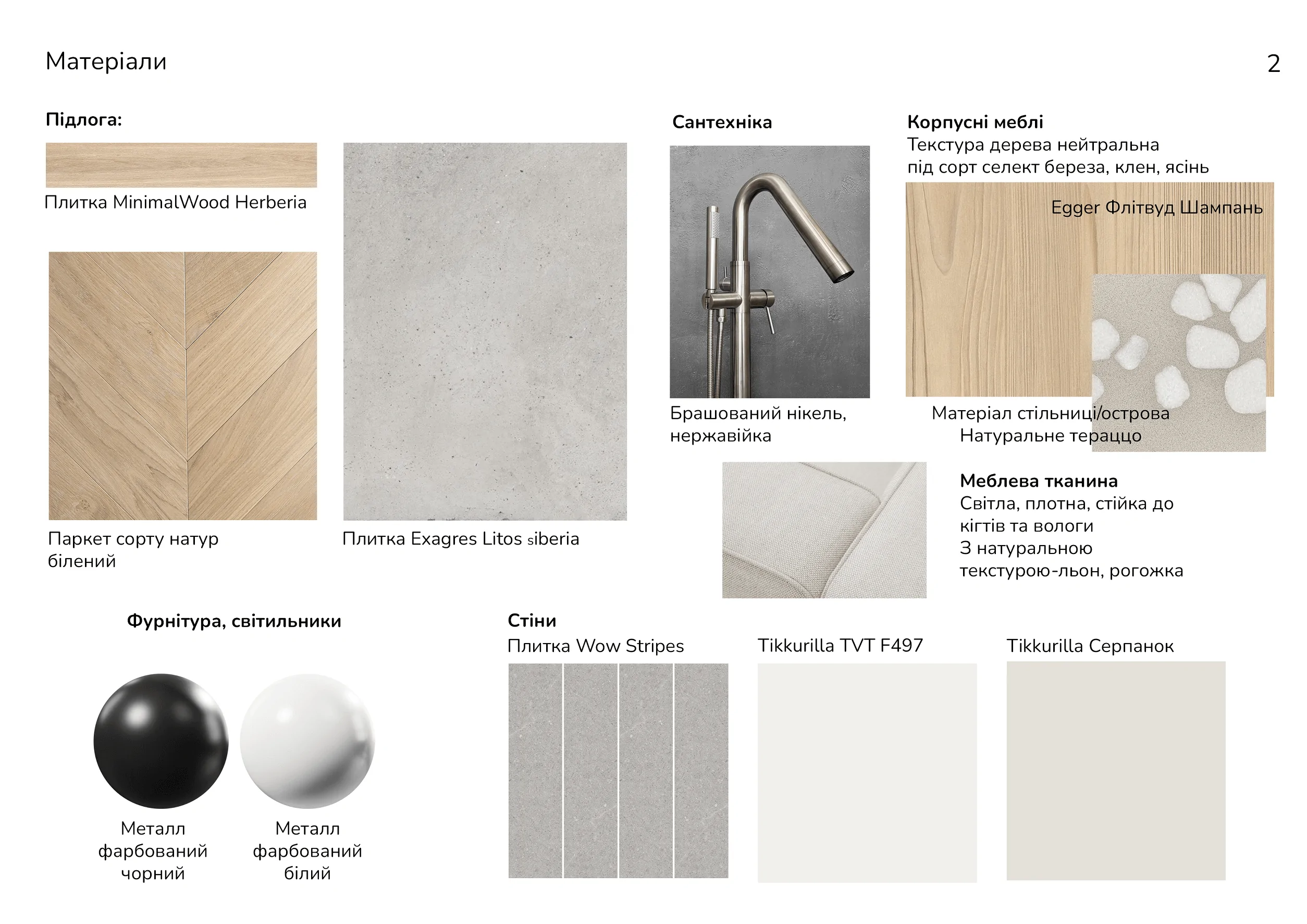 — Подбор и сверка образцов материалов на соответствие визуализациям и стилистической концепции