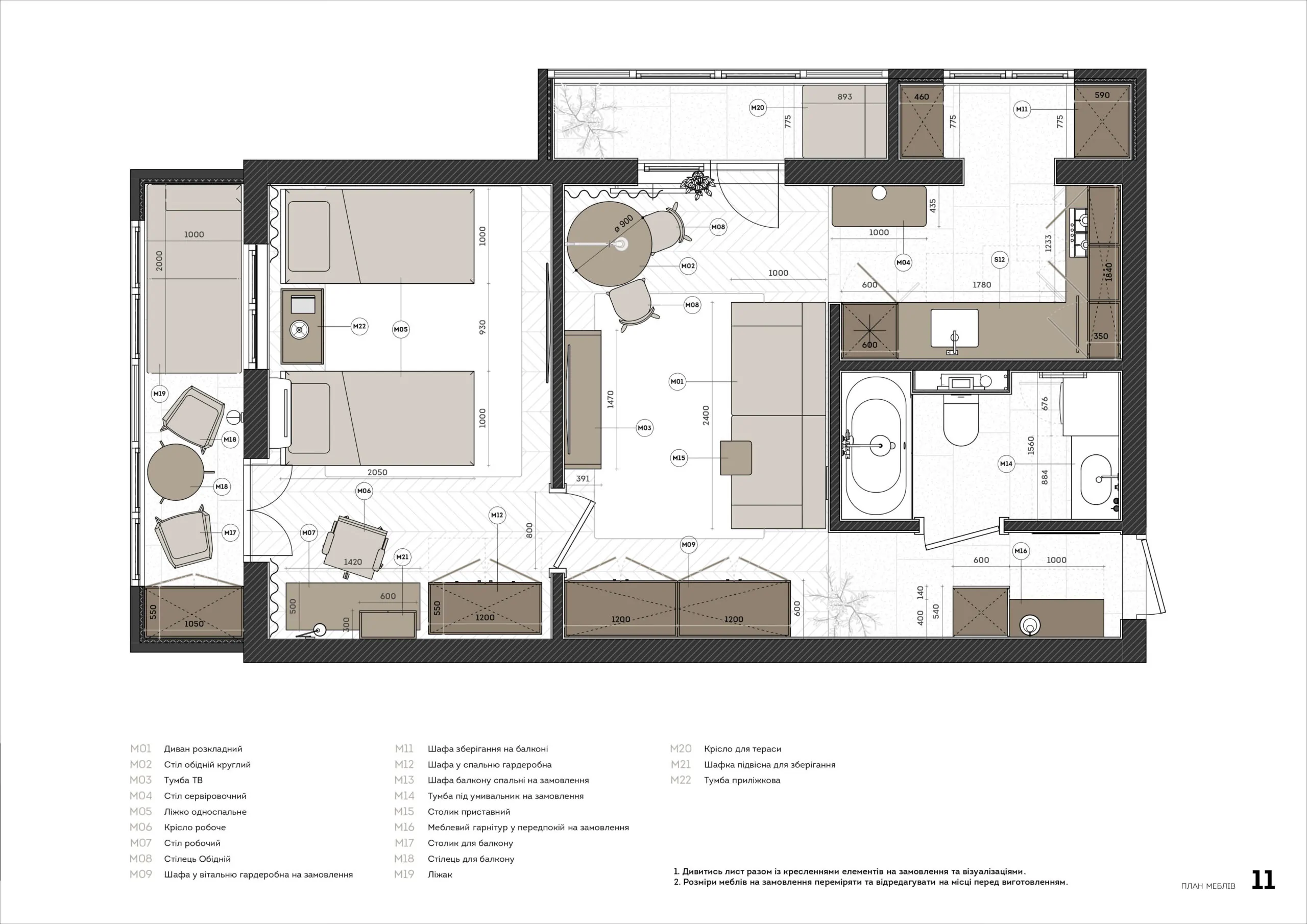 — Список всех используемых материалов, мебели, светильников с указанием их количества, производителей и других характеристик.