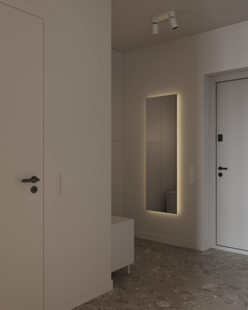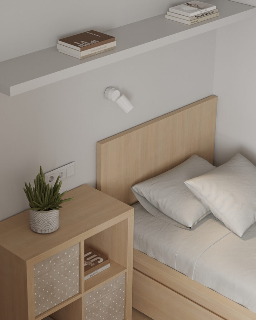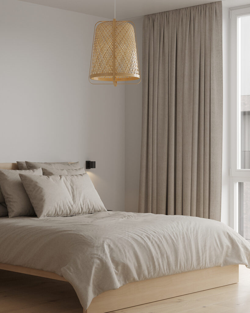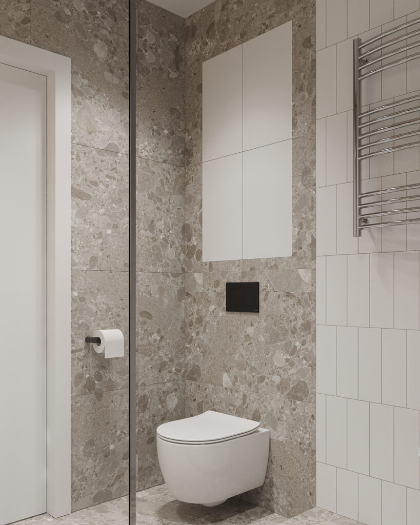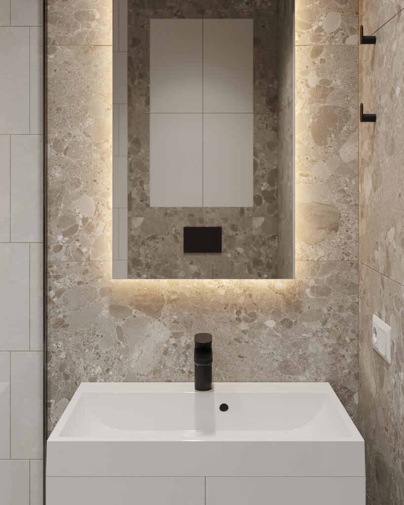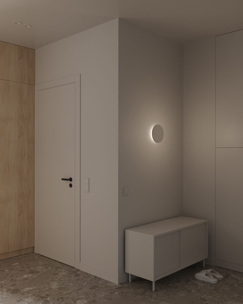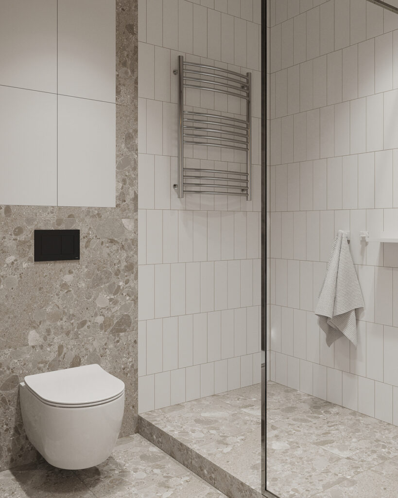 — Нейтральная палитра; — Простые формы и силуэты; — Рассеянный теплый свет; — Легкие в уборке материалы; — Приятная на ощупь фурнитура; — Экологичные материалы и мебель.