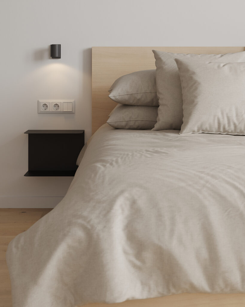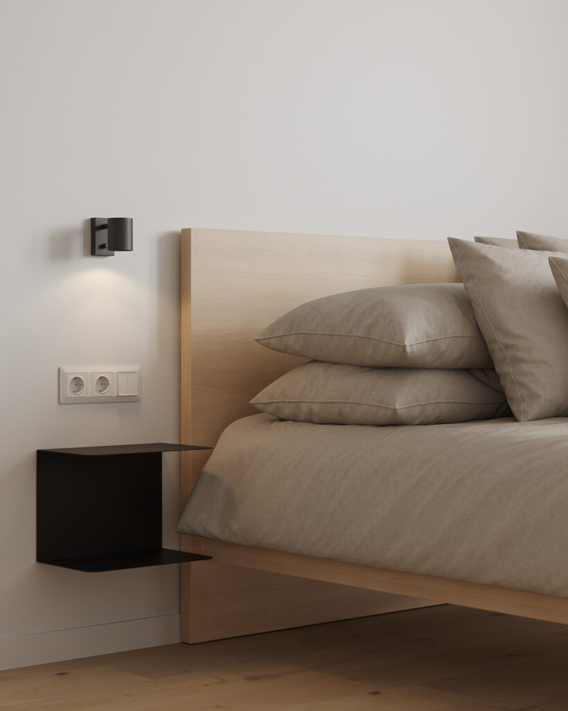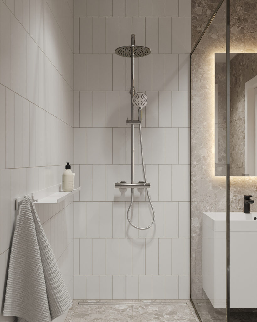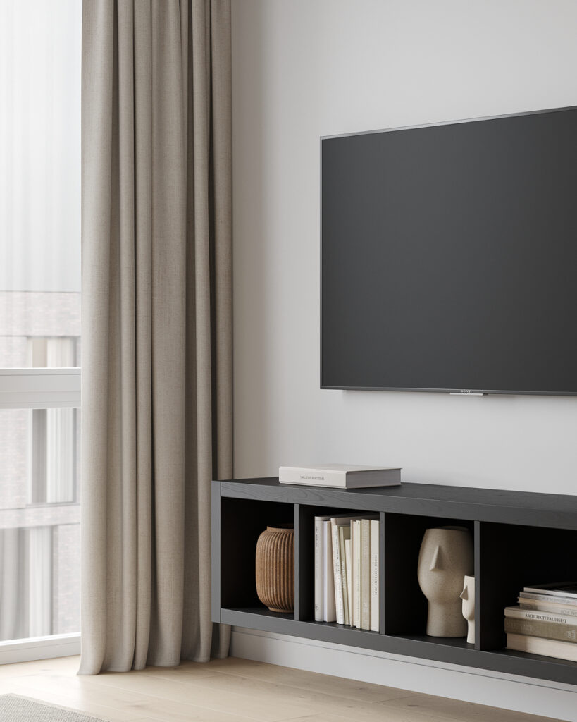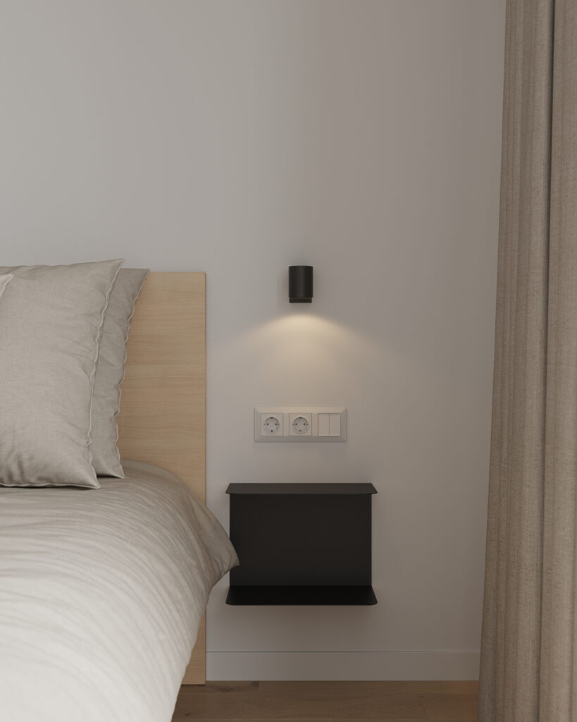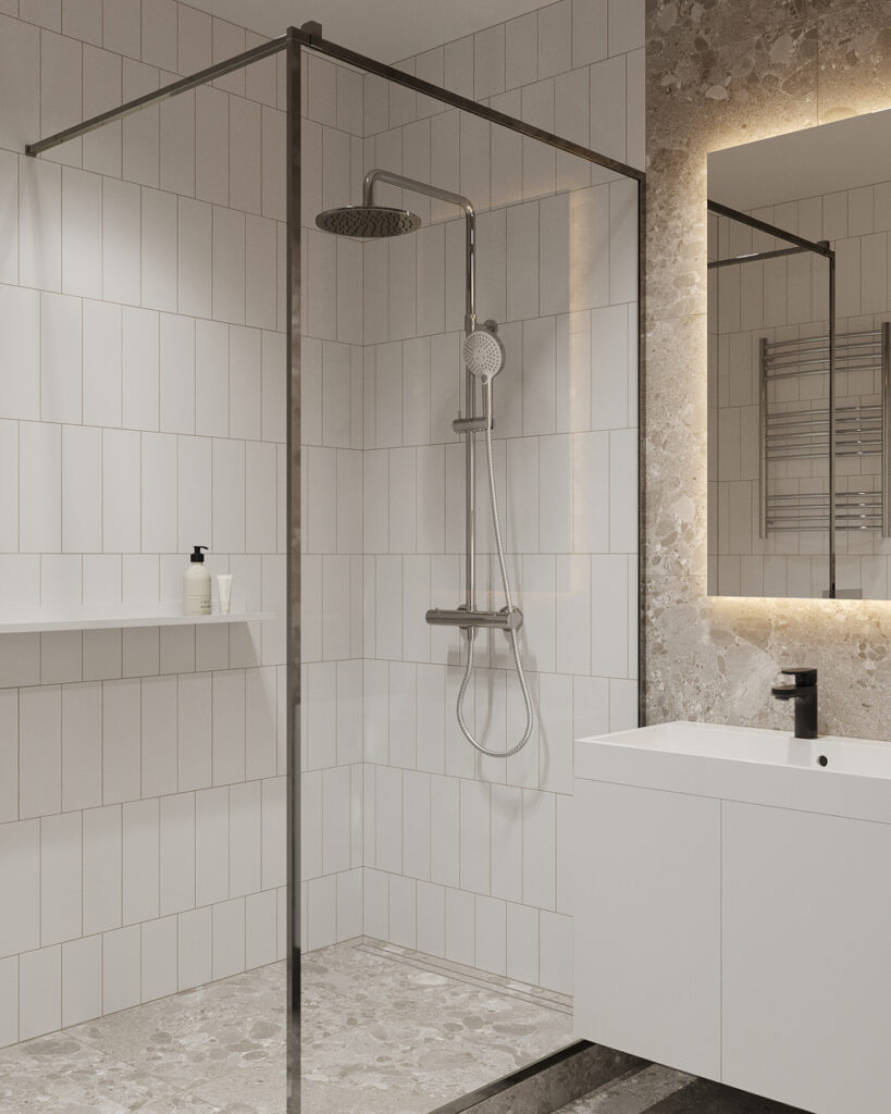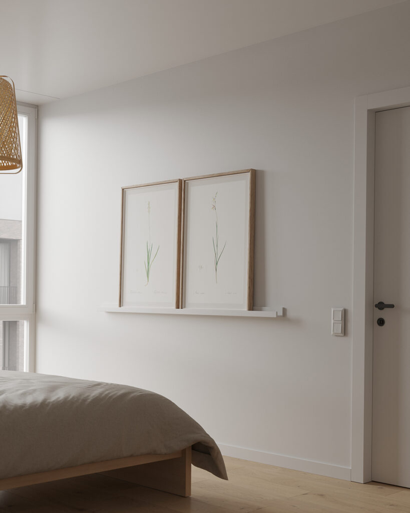 — Нейтральная палитра; — Простые формы и силуэты; — Рассеянный теплый свет; — Легкие в уборке материалы; — Приятная на ощупь фурнитура; — Экологичные материалы и мебель.
